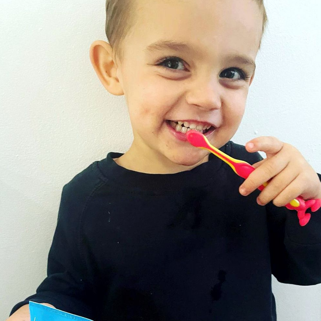 • Използвайте паста за зъби с размер на грахово зърно.