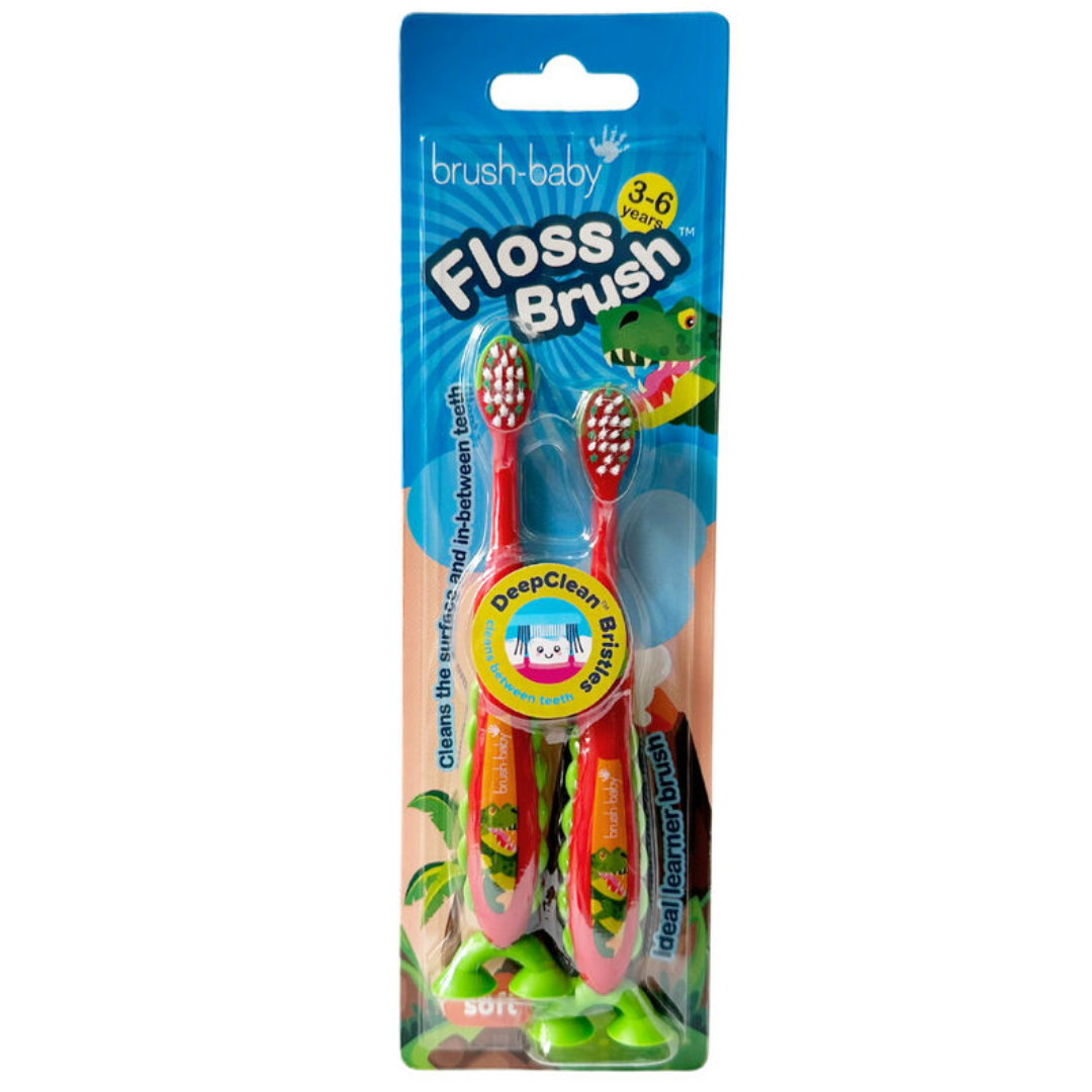 Brush-Baby: FlossBrush - 2 бр. четки за зъби за деца 3-6 години - Dinosaurs