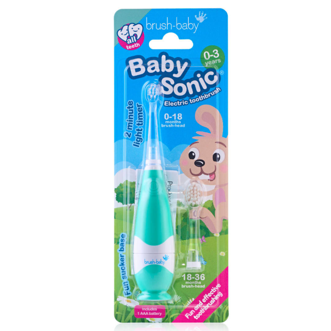 BabySonic Teal е първата и удобна четка за зъби за вашите малки деца, която не само почиства малките им зъбки, но ги кара да обичат миенето! От ранна детска възраст (0-36 месеца), тази четка за зъби ще помогне на вашите малки да развият добри навици за грижа за зъбите с безопасността и комфорта, от които се нуждаят.