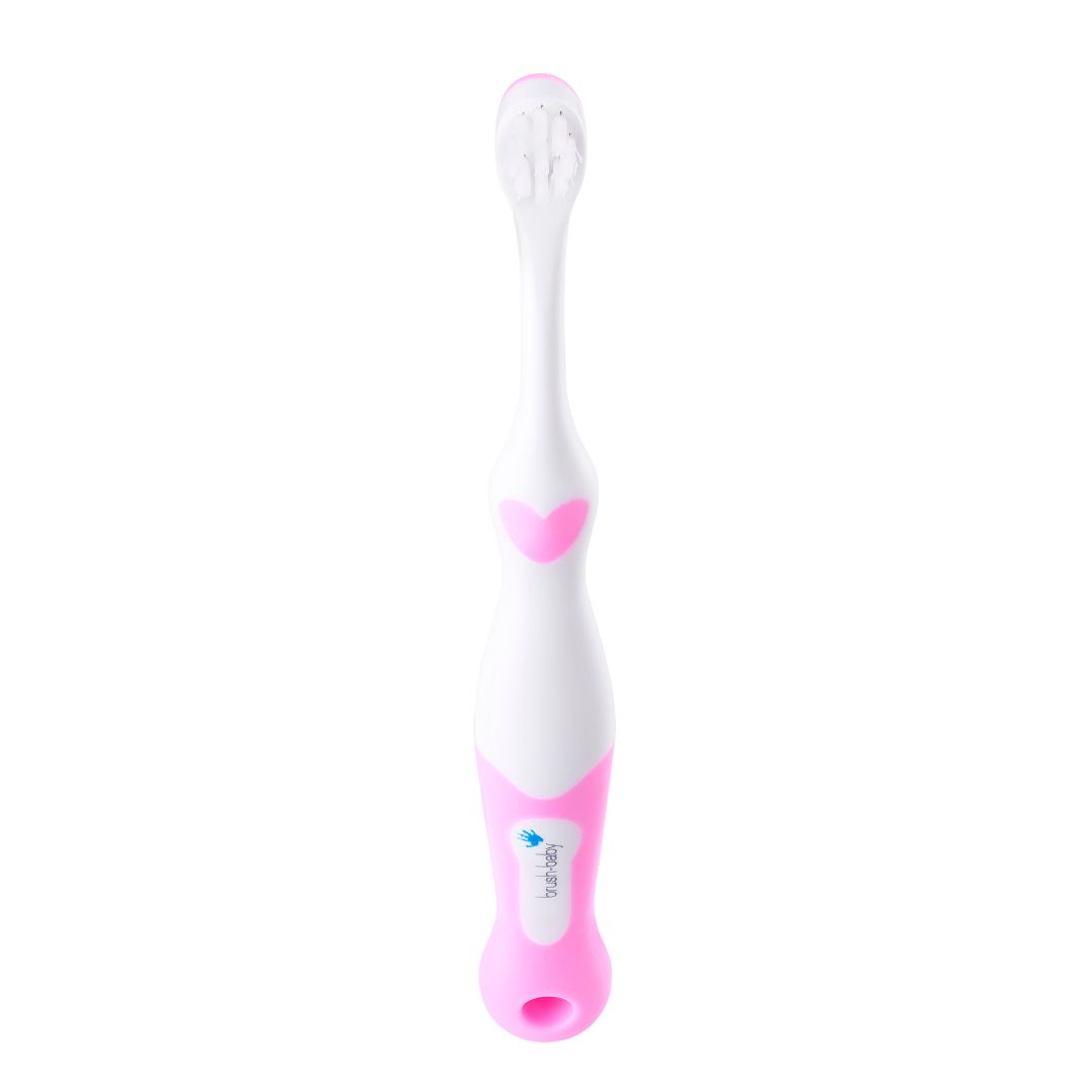 ✔ Насърчава добрите хигиенни навици – Лесната за хващане дръжка подпомага малките ръчички да започнат да експериментират с държането и миенето на зъби. Малката глава на четката е специално проектирана за бебешката уста, като насърчава създаването на здравословни навици от ранна възраст.