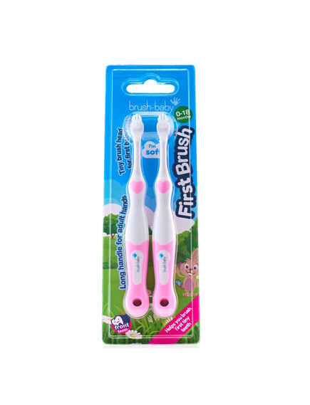First Brush™ е идеалната четка за зъби за запознаване на вашето бебе с това колко е важна добрата устна хигиена! Специално създадена за периода на никнене на млечните зъби, тази бебешка четка с изключително меки косъмчета нежно почиства първите зъбки и защитава чувствителните венци.