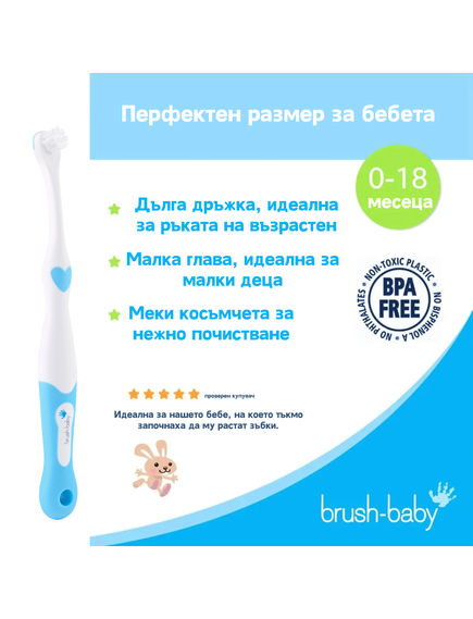 Използването на подходяща за възрастта четка помага на бебето да премине плавно към следващия етап в грижата за устната хигиена, като изгражда здравословни навици за бъдещето.