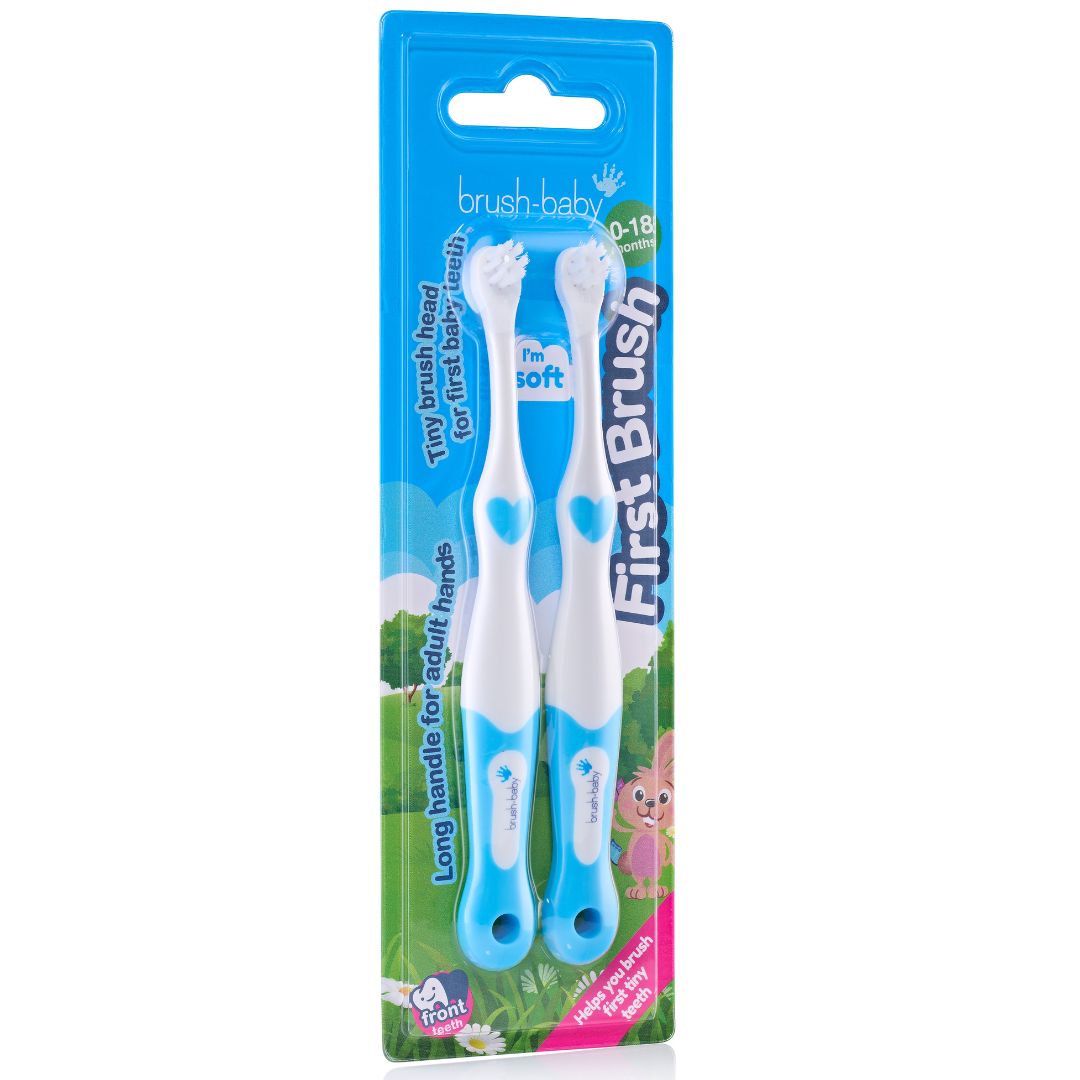 Brush-Baby: Моята първа четка за зъби 0-18 месеца ( 2бр. в опаковка ) - Син цвят