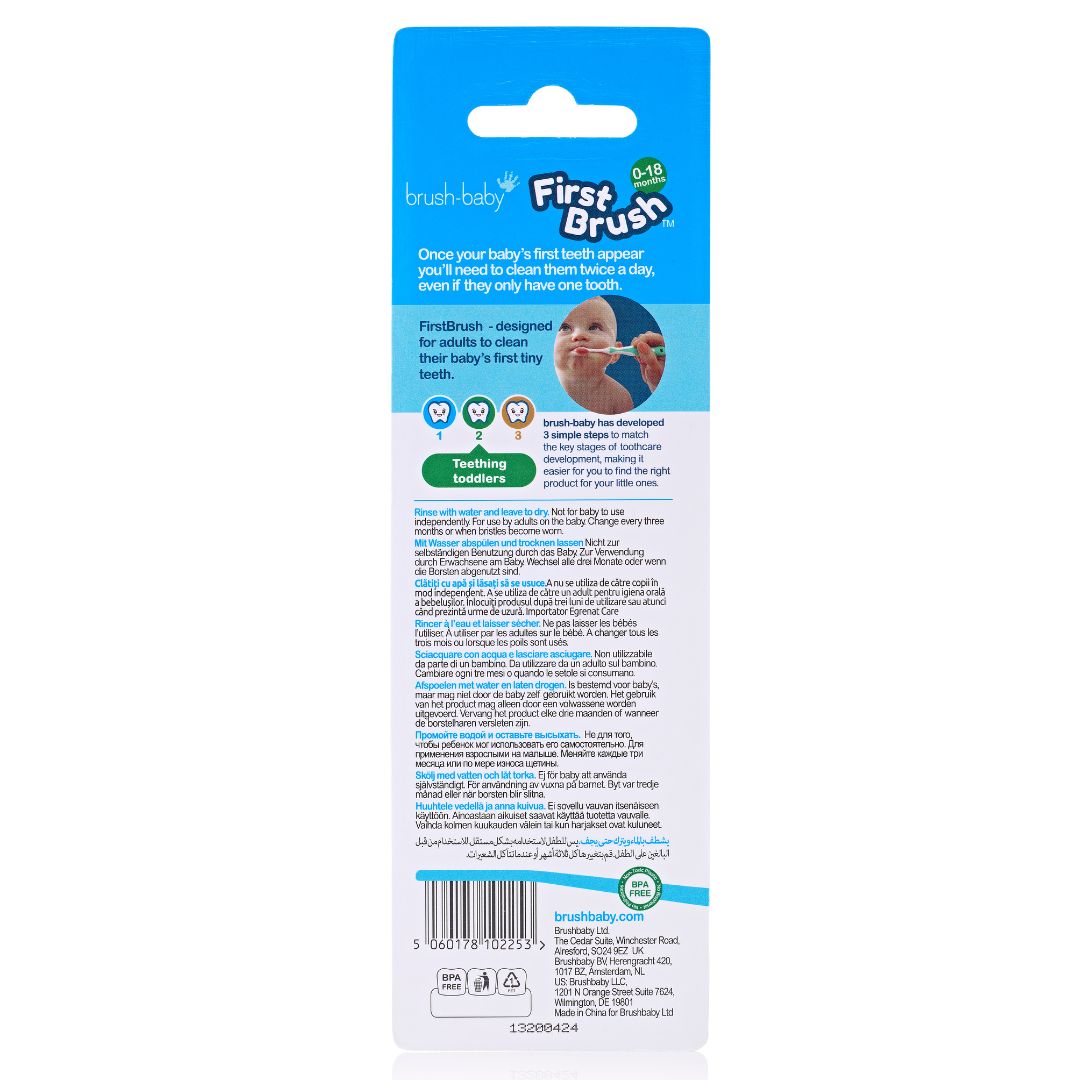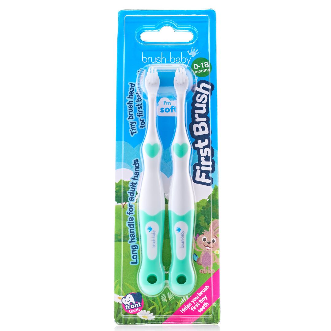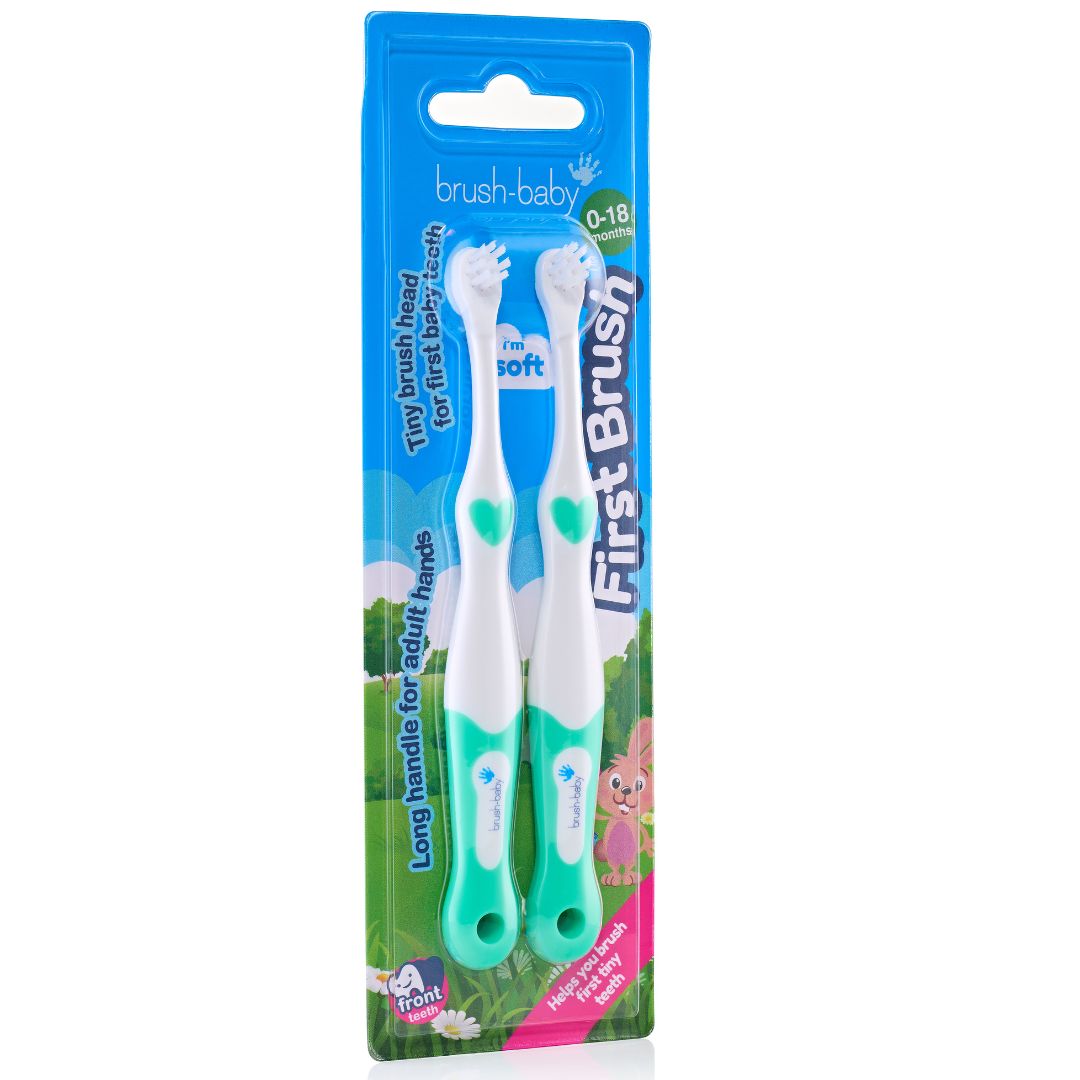 Грижата за устната хигиена започва още от първия ден! Дори ако бебето има само няколко зъбчета или е в процес на никнене, използването на специализирана четка като First Brush™ е от съществено значение.