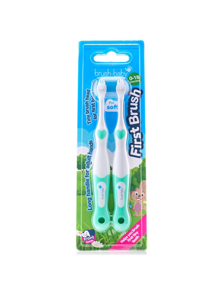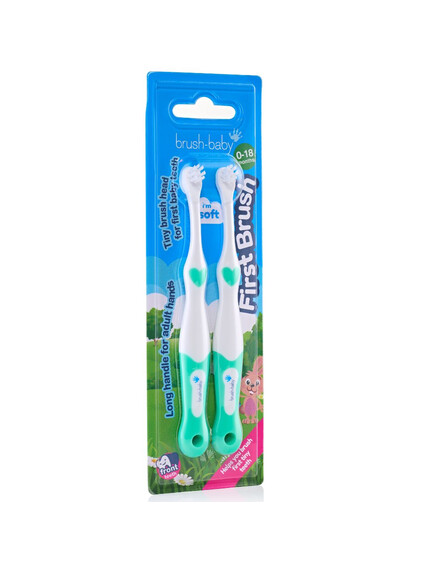 Brush-Baby: Моята първа четка за зъби 0-18 месеца ( 2бр. в опаковка ) - Зелен цвят