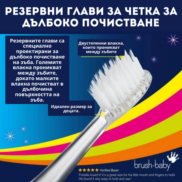 Предназначени за деца над 3 години, тези глави предлагат комбинация от забавление и ефективност, като същевременно поддържат добра орална хигиена.