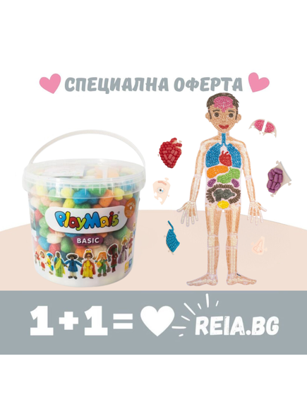 COMBO: Playmais: Крафт игра за моделиране - кофа с 500 броя пръчици + Крафт образователен шаблон за деца и учители - Човешкото тяло