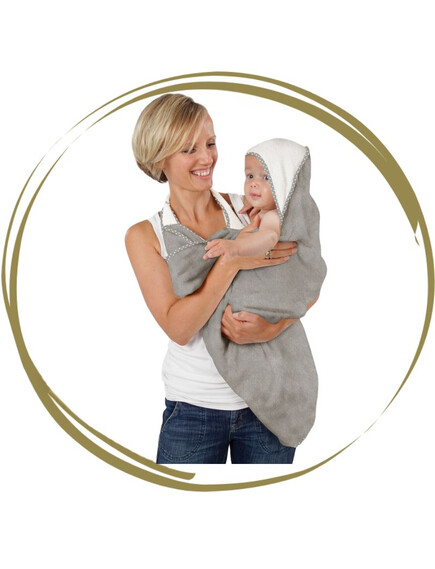 Слага се се като престилка, което ви позволява да вземете и завиете бебето си с едно движение , без да се притеснявате как да държите кърпата. Качулката се поставя лесно на главичката на бебето, за да можете да го гушнете и да го подсушите бързо.