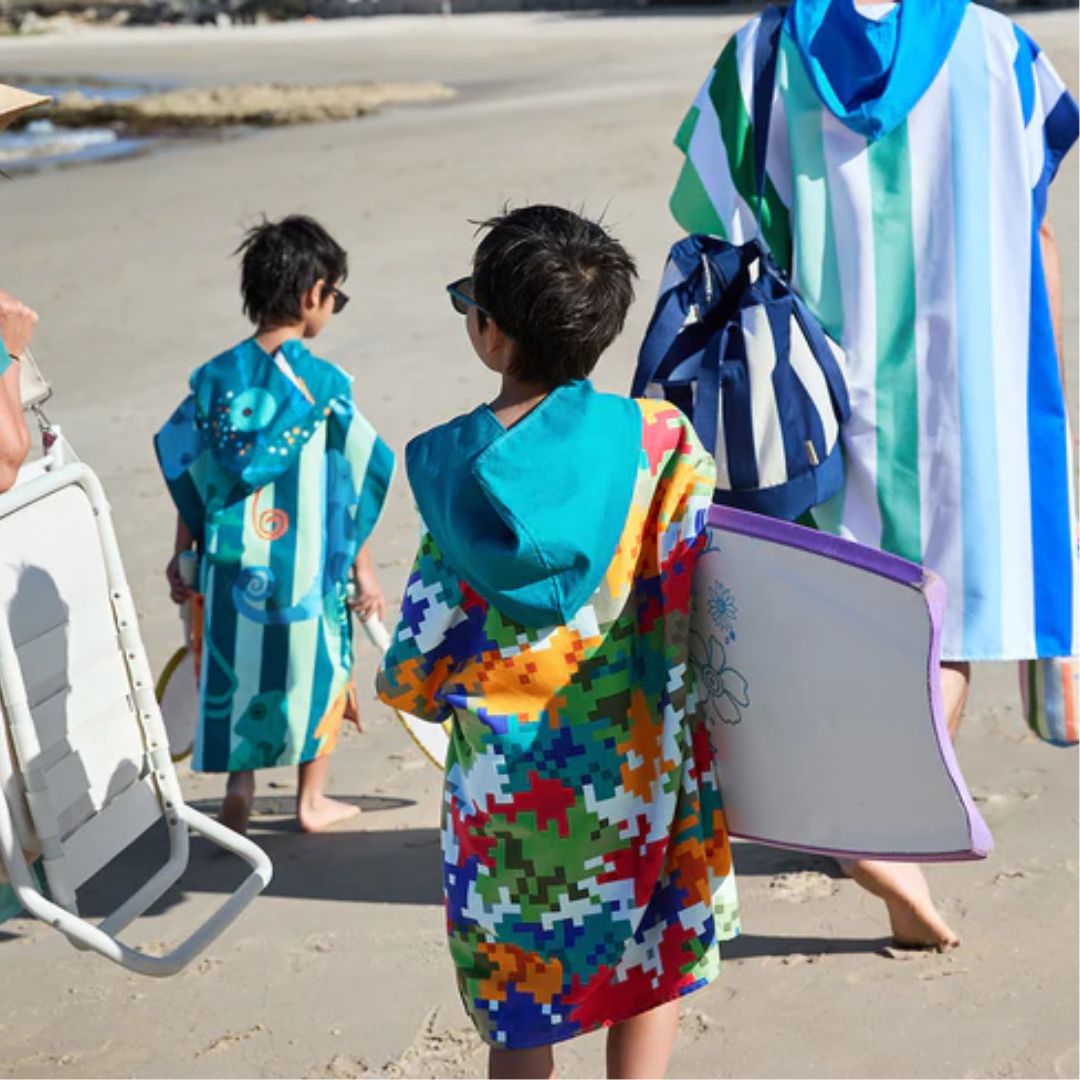 Пончотата на Dock & Bay са перфектният избор за всяка майка, която търси комфорт и практичност за своето дете в басейна или на плажа. Изработени от висококачествен микрофибър, те абсорбират водата мигновено, съхнат бързо и осигуряват мекота, идеална за чувствителната детска кожа.