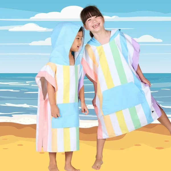 Пончотата на Dock & Bay са идеалният съюзник за всяка майка, която търси максимален комфорт и практичност за детето си в басейна! Изработени от микрофибър с отлично качество, те предлагат незабавно абсорбиране на вода, поддържайки детето сухо и удобно след къпане или тренировка.