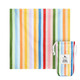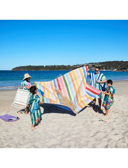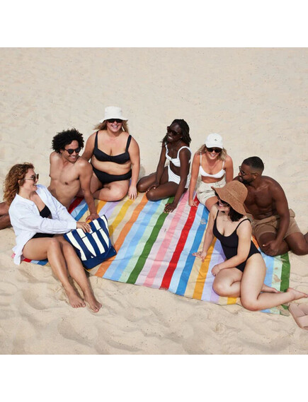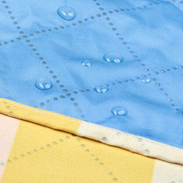 Най-горният слой на одеялото е направен от бързосъхнещ материал, така че няма да се притеснявате, ако се разлее вода или друга течност. Освен това в средата има дупка, за да поставите чадъра си, ако желаете да сте на сянка.