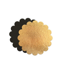 Прекрасен комплект от 4 броя поставки за торта в златен цвят.  Те са изработени от хартия и са с размери 24см /1мм.  Те са водоустойчиви и са подходящи за многократна употреба. Почиствайте с влажна кърпа след всяка употреба!