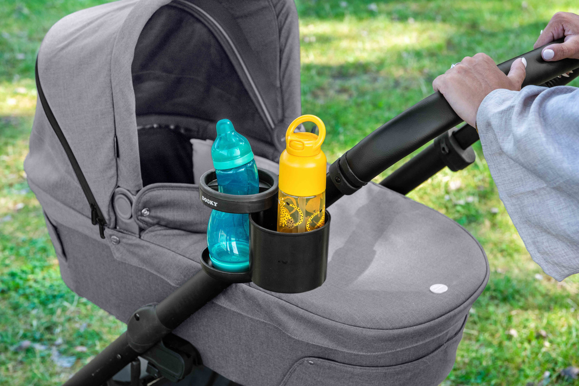 Dooky Cup & Snack Holder е създаден с мисъл както за вашето дете, така и за вас. Носете шишето, плодовете и кафето си в една стилна поставка, докато се наслаждавате на разходката.