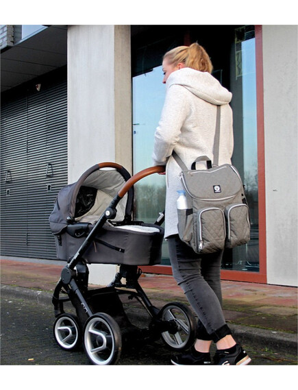 Има странични джобове за бутилки, подложка за повиване и един джоб е предназначен за лесен достъп до мокри кърпички.