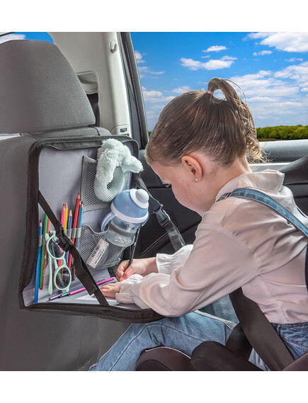 Независимо дали тръгвате на дълго пътуване с кола или просто на кратко разстояние, този 2в1 органайзер и портативна табла за път прави пътуването по-лесно и организирано от всякога.