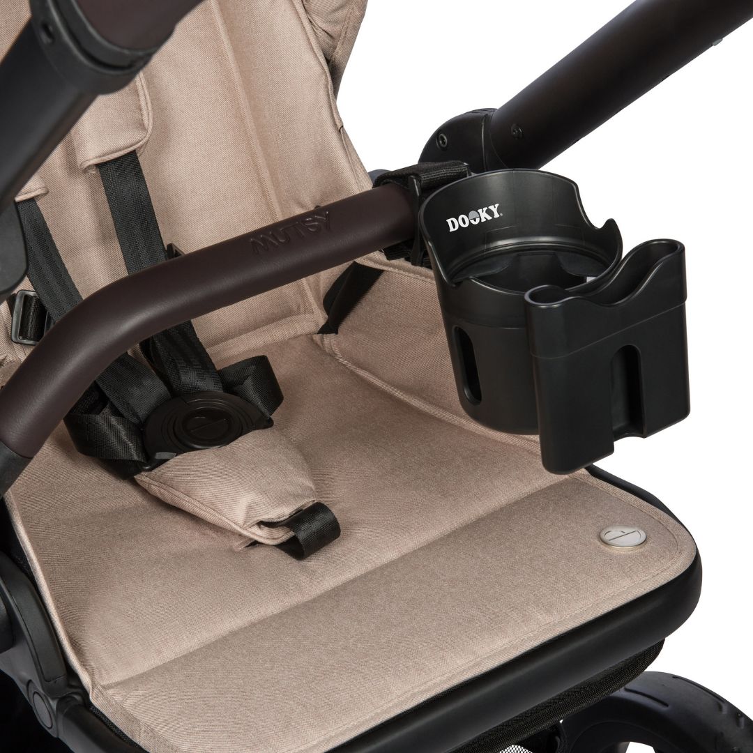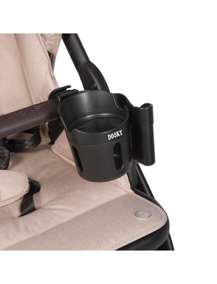 Направете разходката си с количка с пъти по-удобна без да държите мобилния си телефон и напитки в ръка с поставката за чаша 2 в 1 на Dooky!