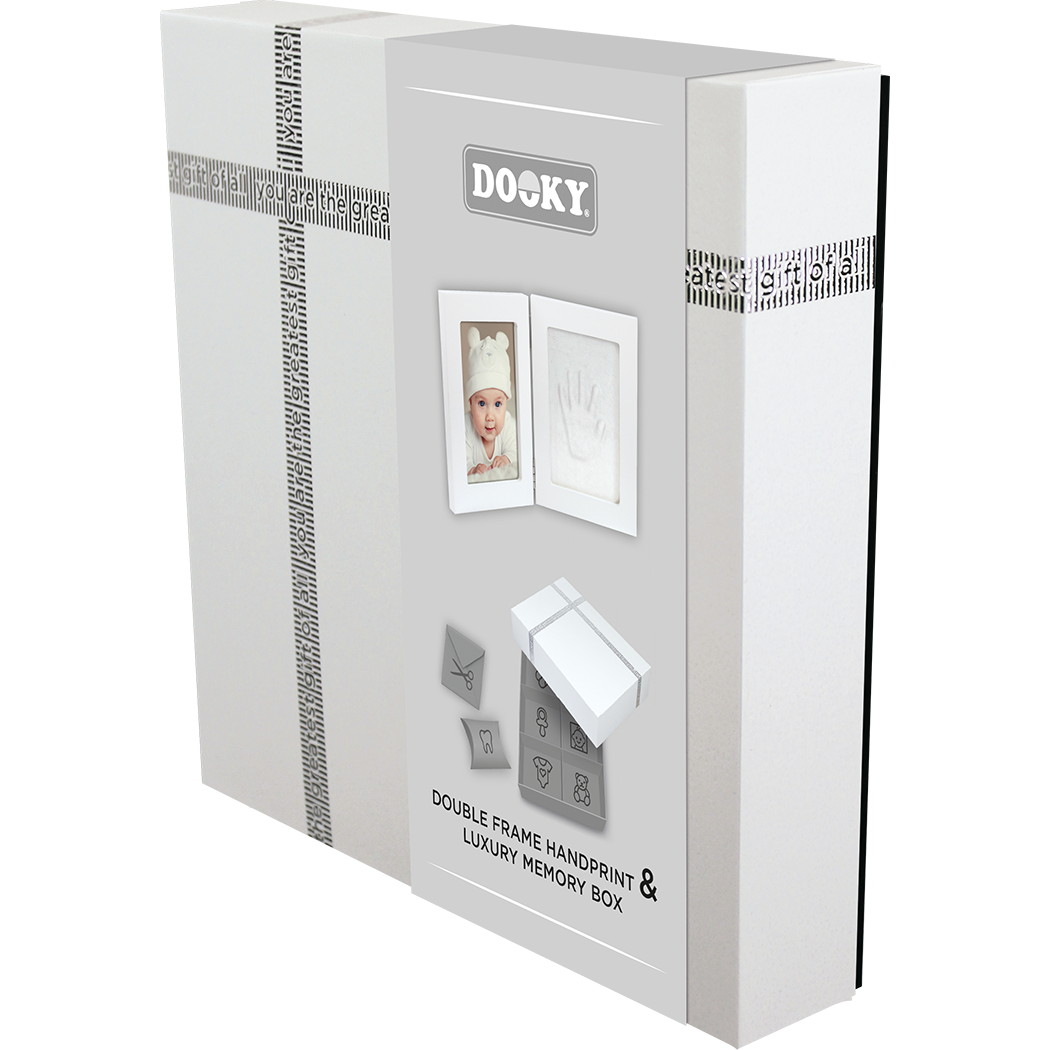 Рамката осигурява място за снимка и за отпечатък от ръчичката или крачето на вашето мъниче. Луксозната кутия за спомени предлага място за съхранение на скъпоценни вещи като залъгалка, кичур коса, зъбче, бебешко боди и др.