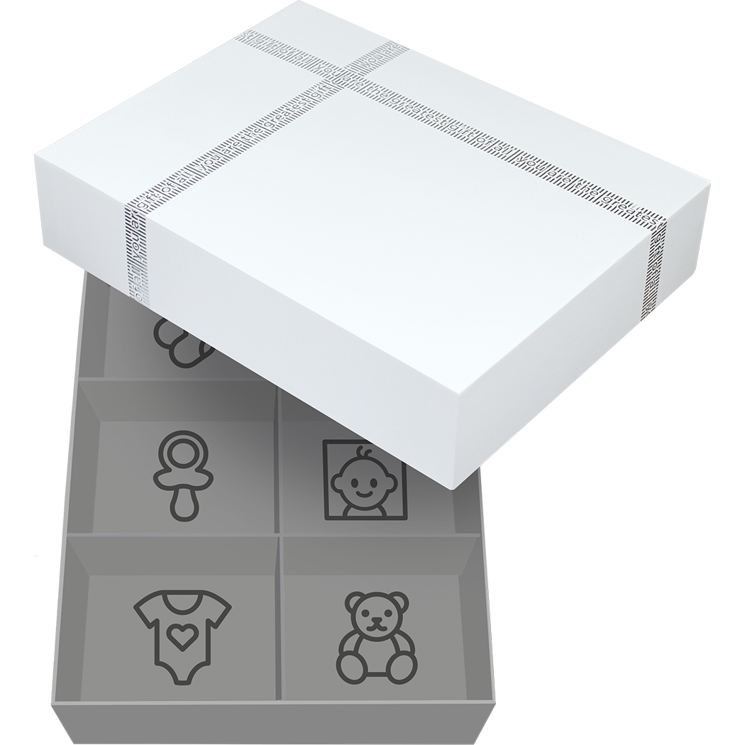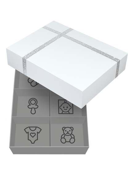 - Кутията за спомени включва: Разделители, кутийка за зъбче и плик/кутийка за кичур коса.