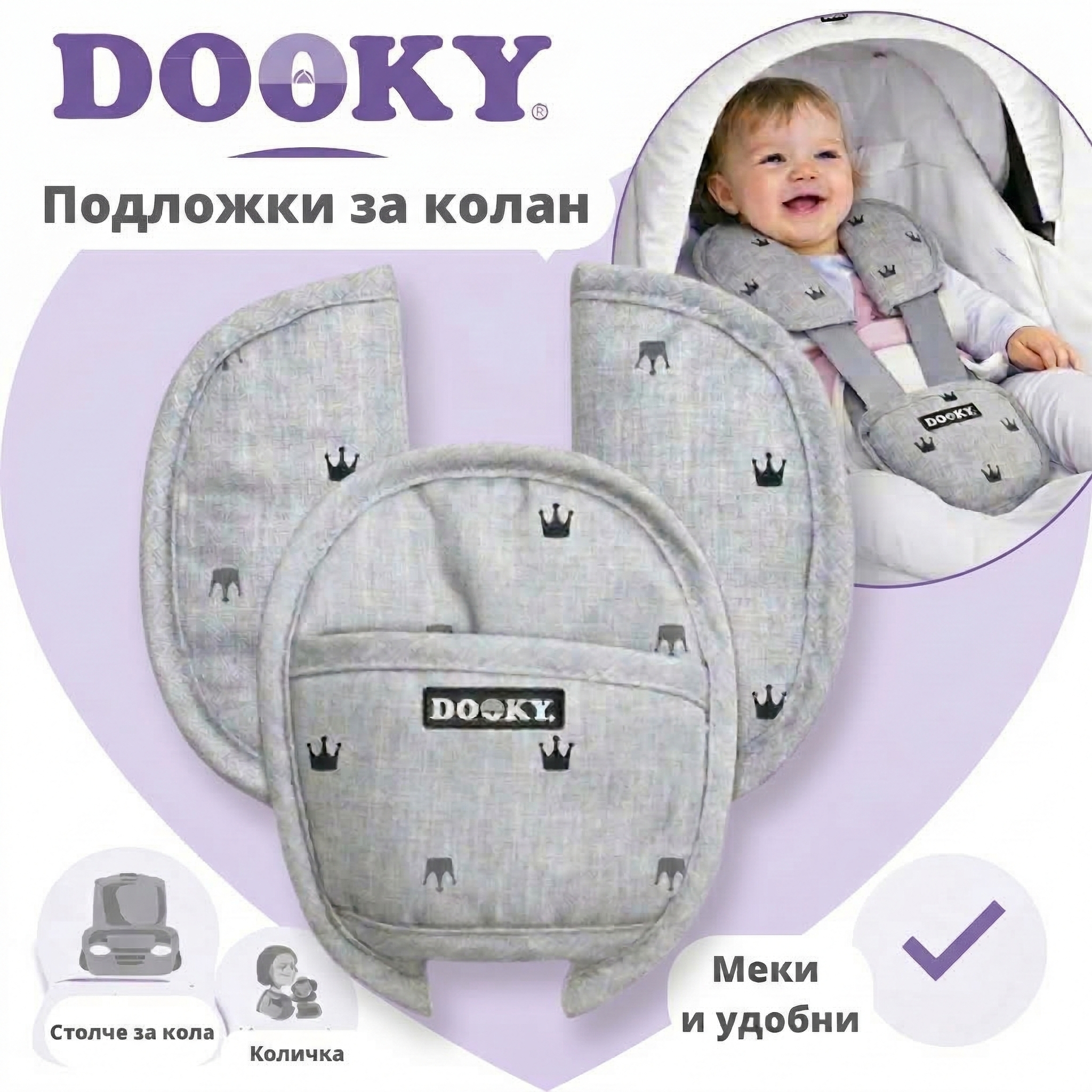 Осигурете комфорт и защитете нежната бебешка кожа с текстилните подложки за колани на Dooky Original!