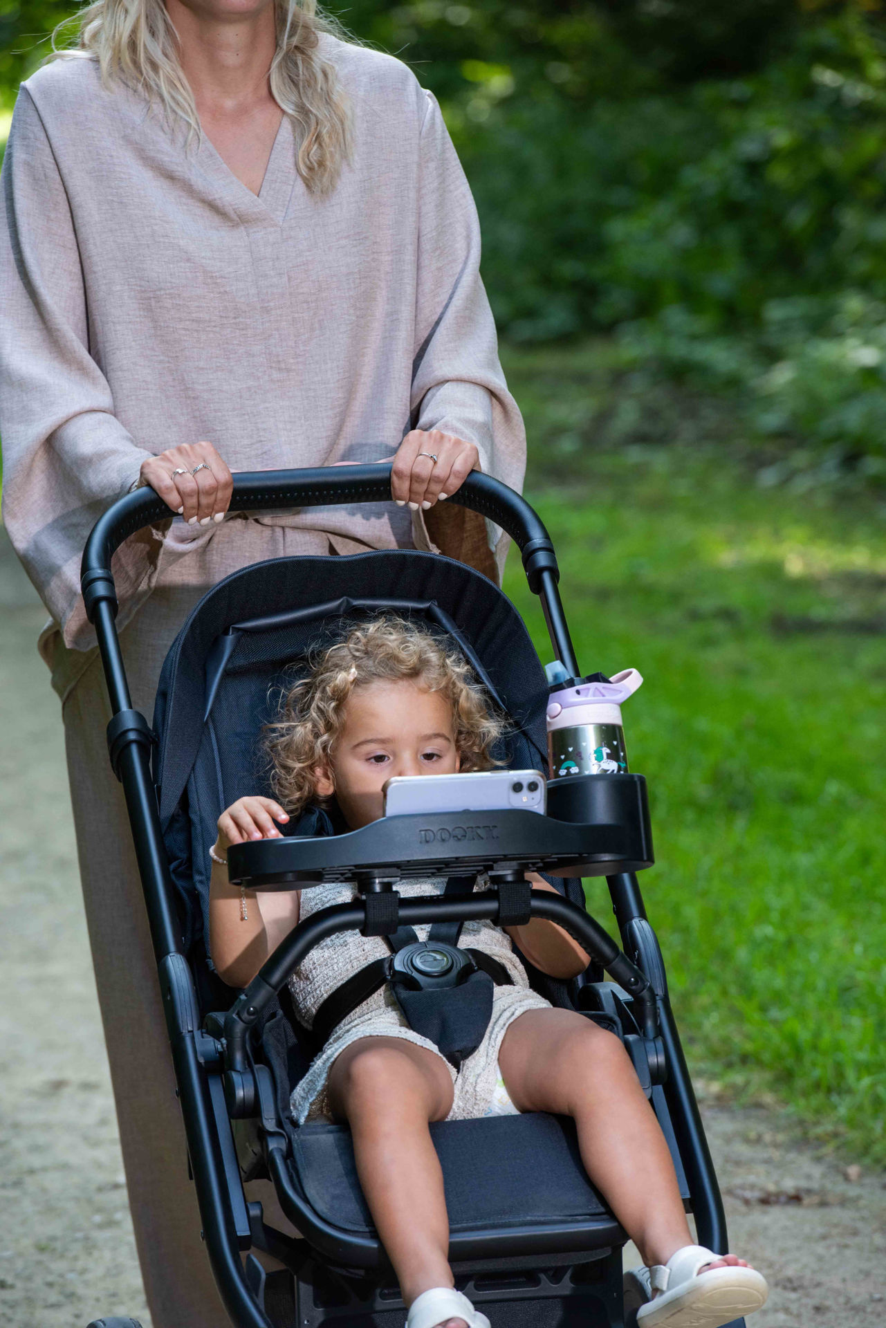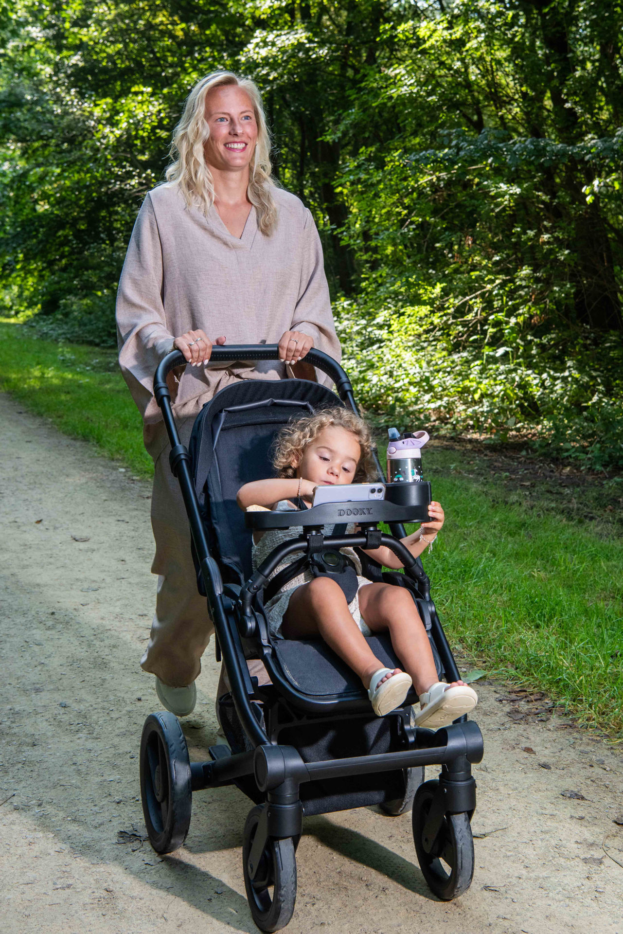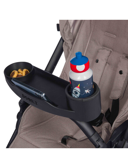 С поставката за количка с място за съхранение на напитка, храна и играчки от Dooky всяка разходка протича гладко.