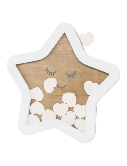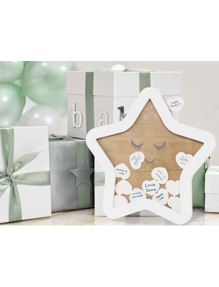 Нека приятелите и семейството напишат или нарисуват нещо на едно от тези сърца, като любящо пожелание или поздрав с името на посетителя. Можете да помолите посетителите да донесат сърцата на бебешкото парти и да ги поставят в рамката във формата на звезда. Тя е ценен сувенир и красив спомен от празника на бебето.