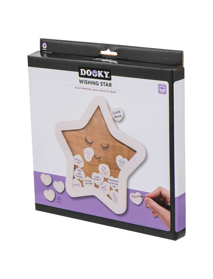 Звездичката на DOOKY Wishing Star е оригинална книга за гости, която превръща специални събития като празненства, раждания и сватби в уникални спомени. Wishing Star е идеална и за бебешко парти или друго парти. Включени са 25 сърца за надписване.