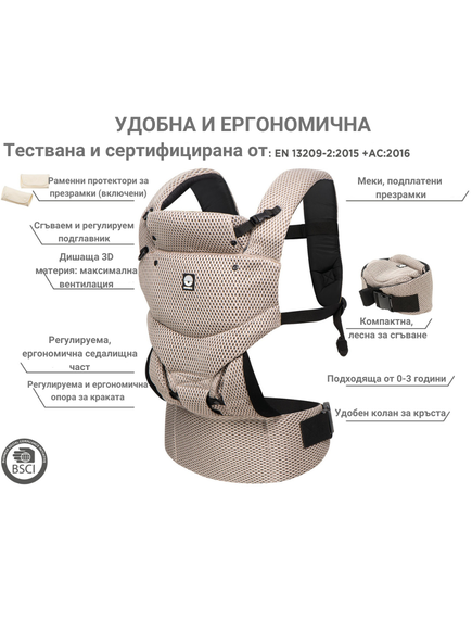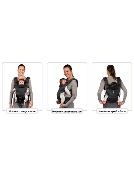 * Въпреки, че раницата е подходяща за носене на бебе "с лице напред" ние не препоръчваме тази позиция но ако желаете да носите детето си така, не трябва да го носите продължително време и е желателно да се консултирате с вашия лекар.