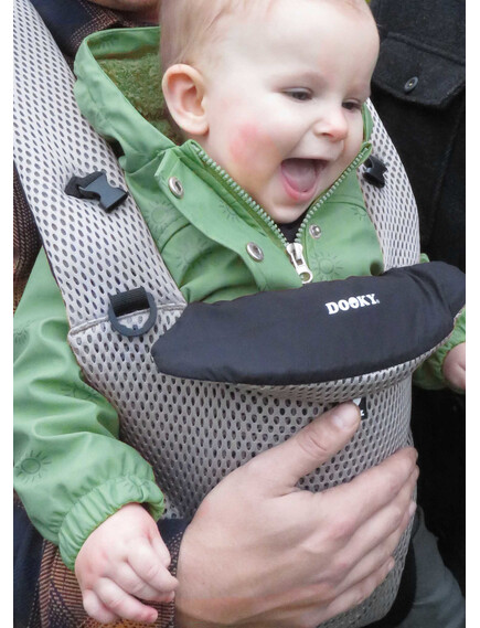 Друго предимство на ергономичната раницата Dooky Original е, че можете да я използвате по 3 различни начина. През първите месеци носете бебето с лице към родителя. Когато дойде моментът, в който бебето ви иска да вижда повече от заобикалящата ви среда, можете да го носите с лице навън. От 6 месеца е възможно да носите детето си и на гръб. Без значение коя позиция изберете, здравият материал и регулируемата облегалка за глава гарантират, че гърбът и главата на вашето дете винаги са правилно поддържани.