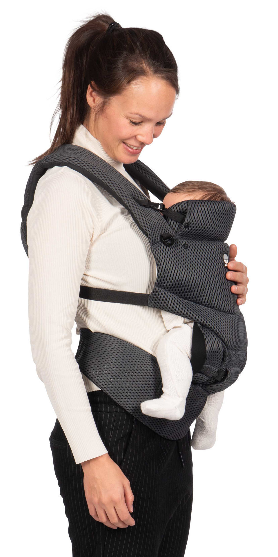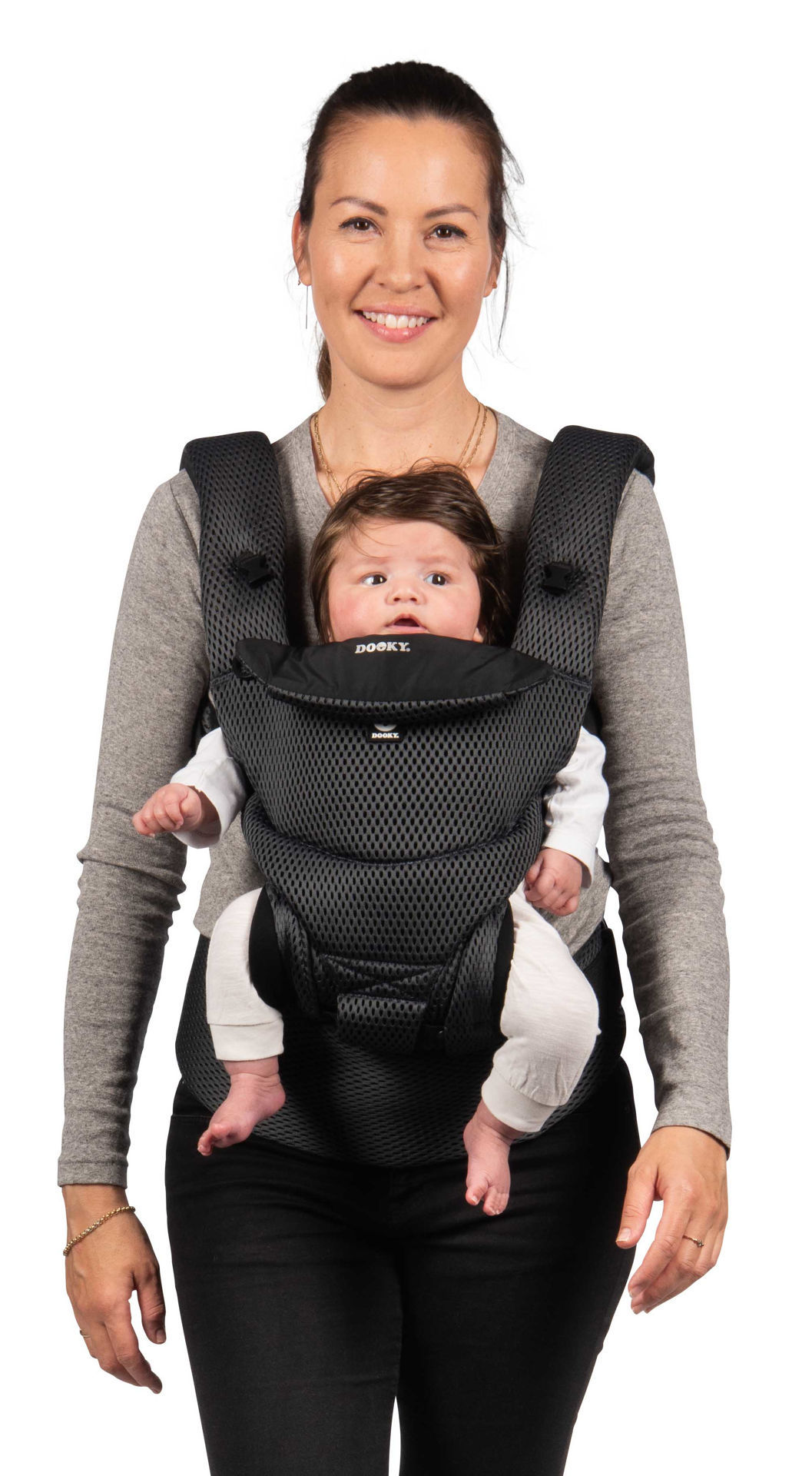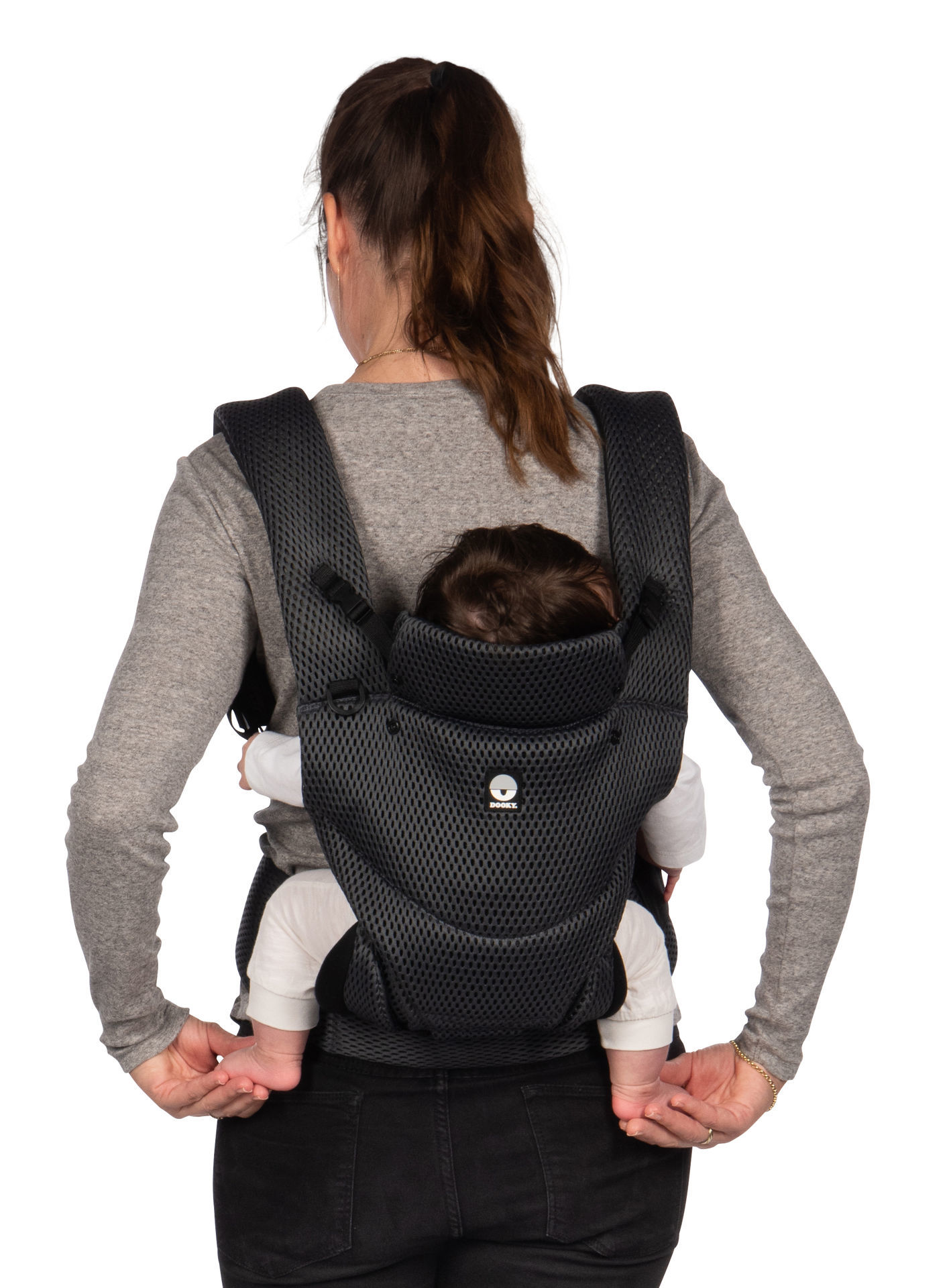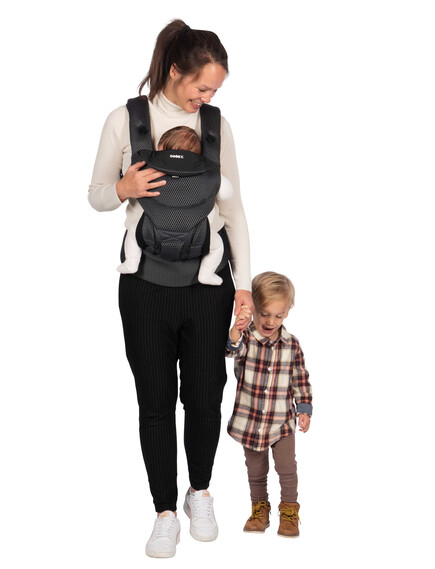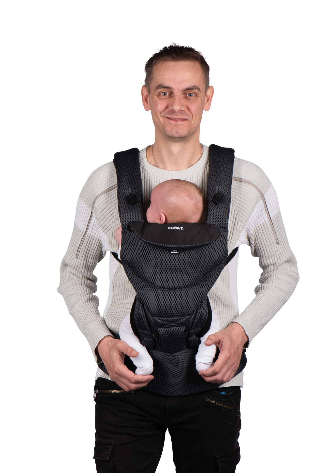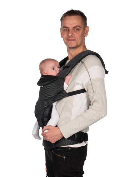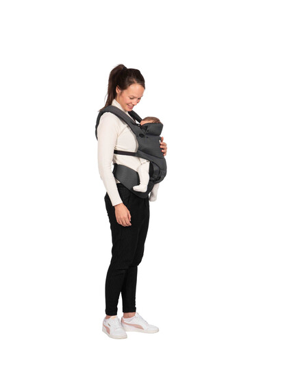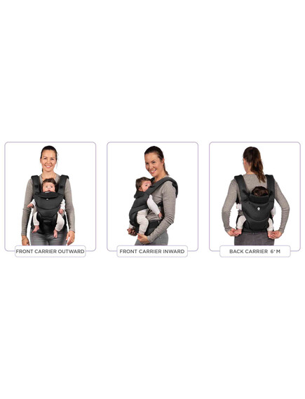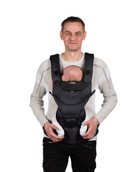 Друго предимство на ергономичната раницата Dooky е, че можете да я използвате по 3 различни начина. През първите месеци носете бебето с лице към родителя. Когато дойде моментът, в който бебето ви иска да вижда повече от заобикалящата ви среда, можете да го носите с лице навън. От 6 месеца е възможно да носите детето си и на гръб. Без значение коя позиция изберете, здравият материал и регулируемата облегалка за глава гарантират, че гърбът и главата на вашето дете винаги са правилно поддържани.
