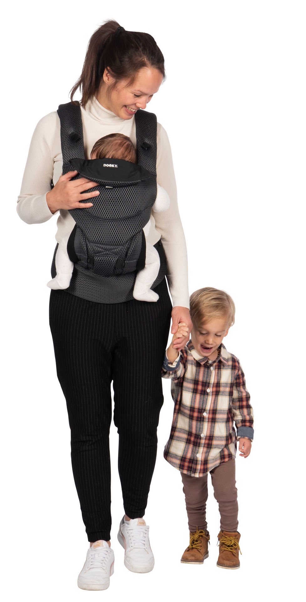 Носенето на бебе често е голямо натоварване за мускулите на гърба и раменете на родителя. Раницата на Dooky има широки, меки подплатени презрамки и колан за кръста, които са регулируеми. Това е важно, защото разпределя тежестта на вашето дете равномерно върху цялата горна част на тялото. Това прави носенето и много по-удобно!
