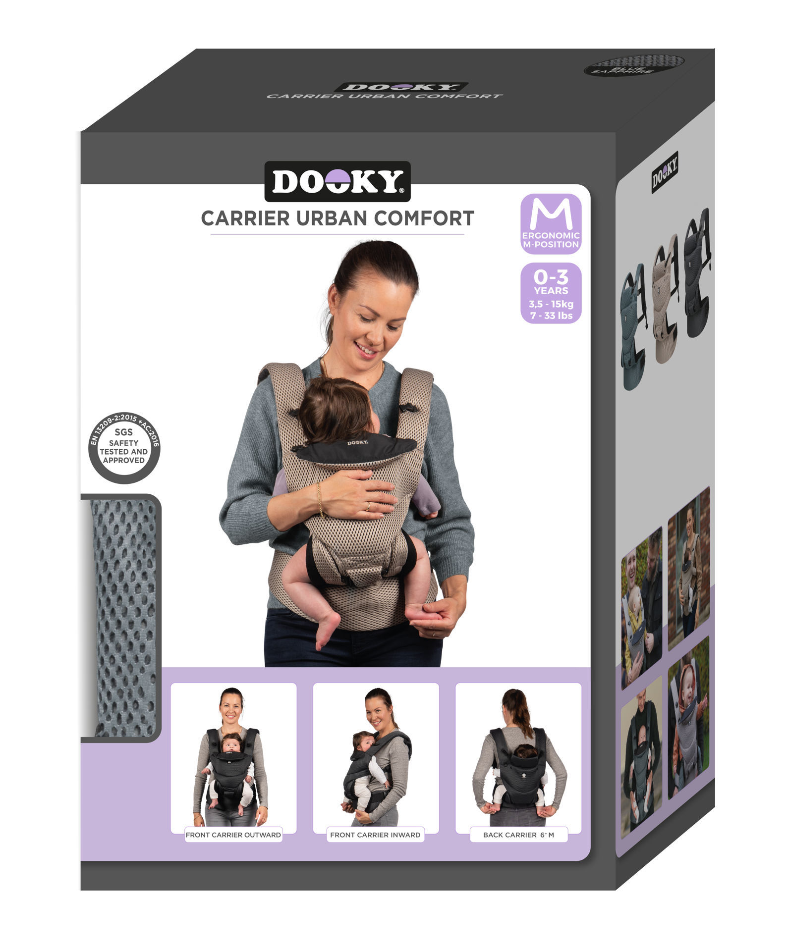 Раницата за новородено Dooky може да се използва от раждането до приблизително 3-годишна възраст на вашето дете. Отговаря на всички изисквания за безопасност и е тестван и одобрен в съответствие със стандартите EN 13209-2:2015.