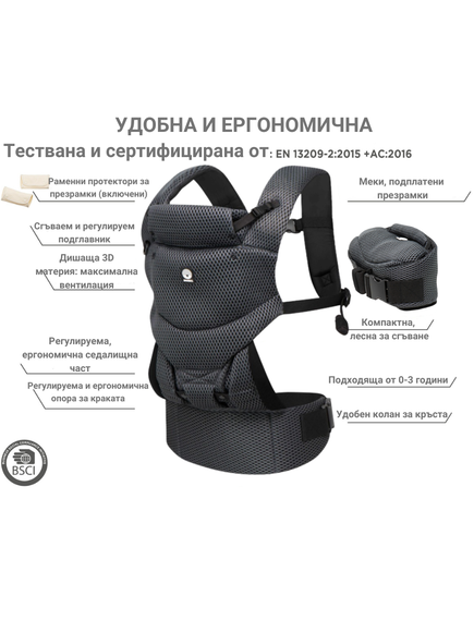 Търсите добра надеждна и ергономична раница от възраст 0+? Тази раница Dooky Original е не само удобна за вас и вашето бебе, но и отговаря на всички ергономични изисквания! - Подходяща от 0-3 години (3,5 кг – 15 кг) с Ергономична М-позиция на седалката. Изработена от 3D дишаща мрежеста материя за отлична вентилация. Също така и създадена за многофункционална употреба (носене отпред навътре, носене отпред навън и носене на гърба) - SGS тестван и одобрен в съответствие със стандартите EN 13209-2:2015.