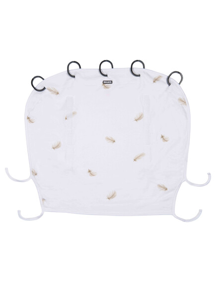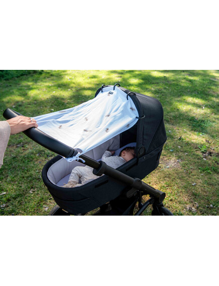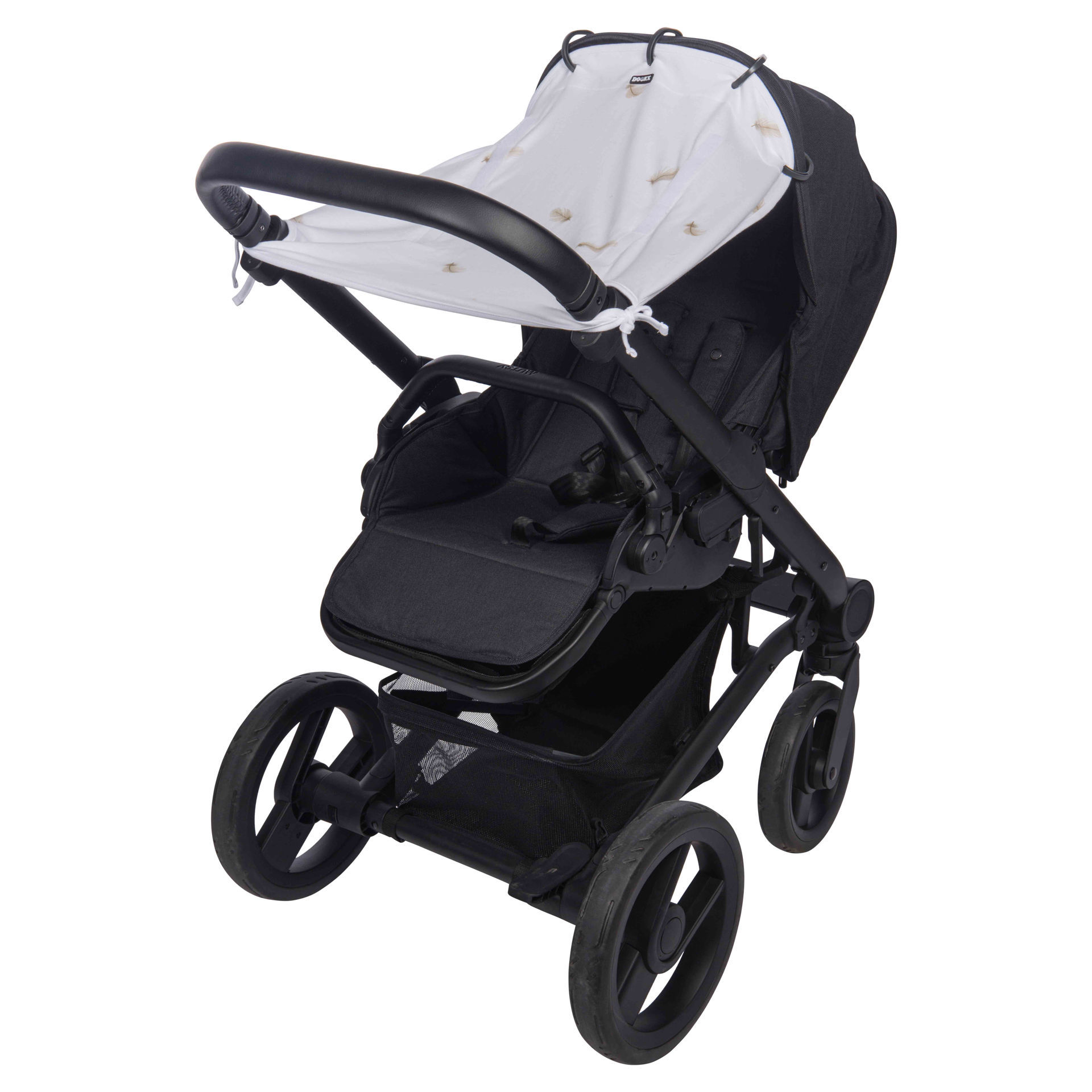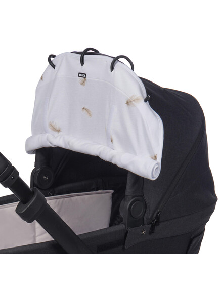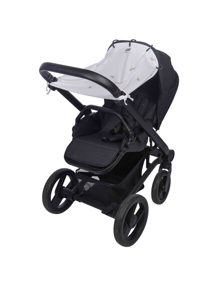 Точно за това UV сенникът на Dooky Original e отговорът. Изработен е от 100% памучна дишаща материя (която създава подходяща вентилация) със защита срещу слънцето UPF50 +, която блокира повече от 95% от вредните UVA и UVB лъчи и се смята за отличнa UV защита. Тяхната основна особеност са пръстените, с които много лесно се връзват на количката или на столчето за кола.