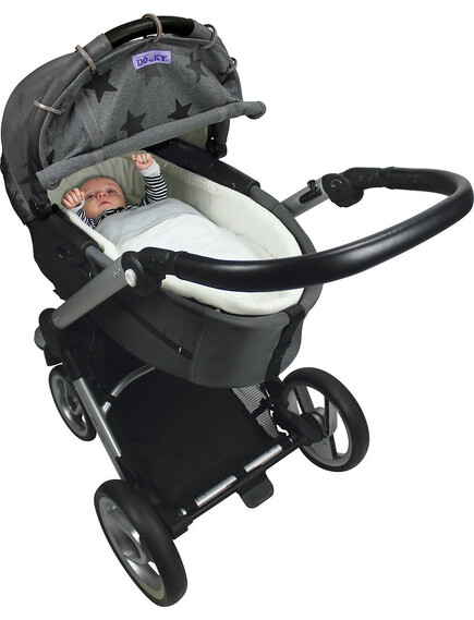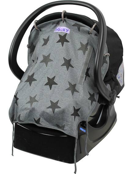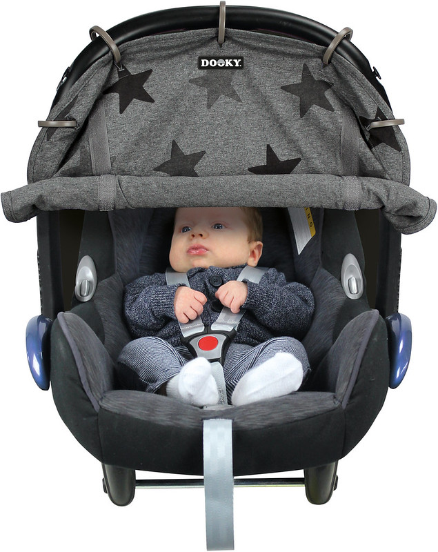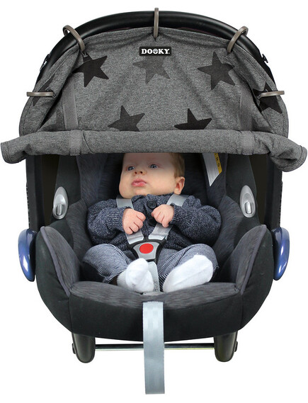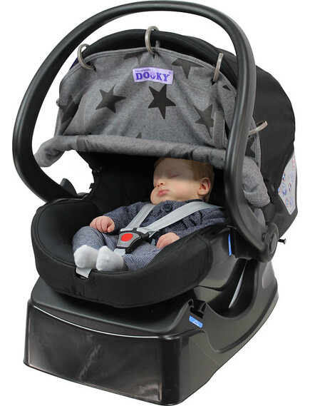 Сенника Dooky Original се поставя за секунди върху всички колички и столчета за кола с наличните пръстени.