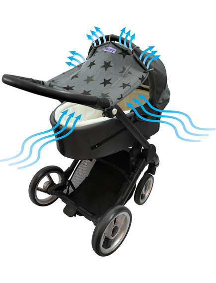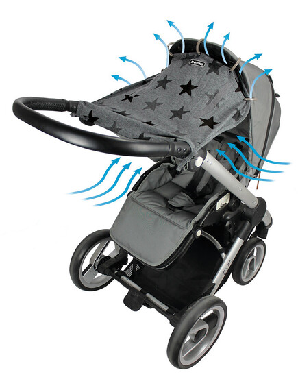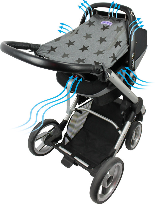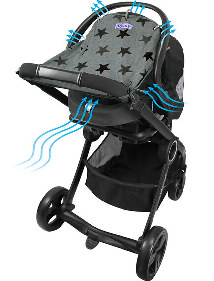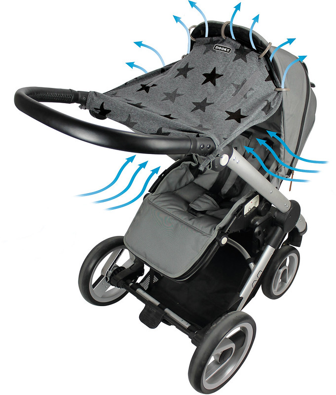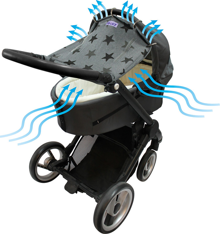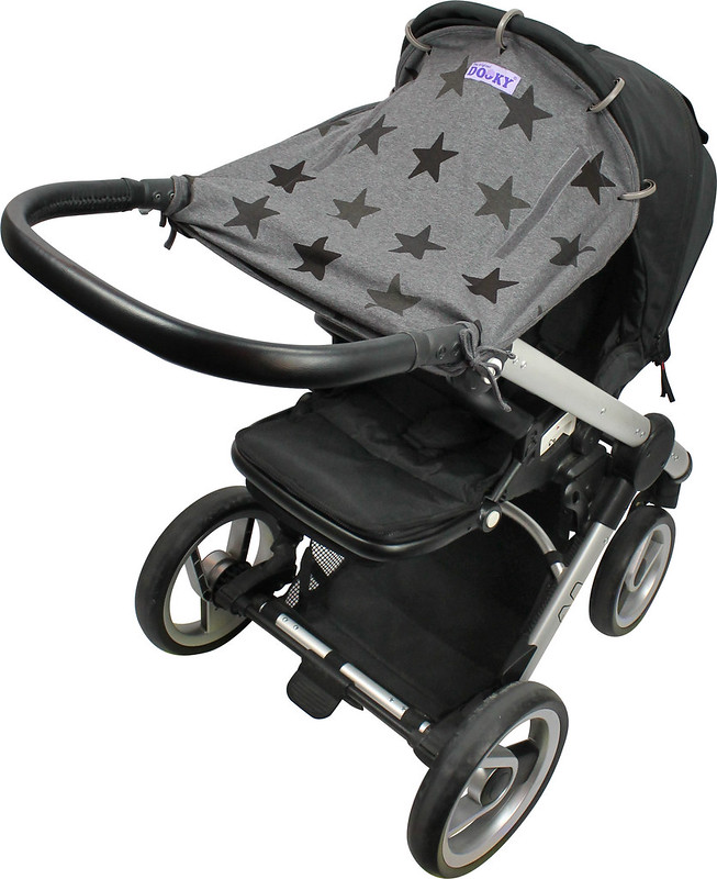 Точно за това UV сенникът на Dooky Original e отговорът. Изработен е от 100% памучна дишаща материя (която създава подходяща вентилация) със защита срещу слънцето UPF50 +, която блокира повече от 95% от вредните UVA и UVB лъчи и се смята за отличнa UV защита. Тяхната основна особеност са пръстените, с които много лесно се връзват на количката или на столчето за кола.