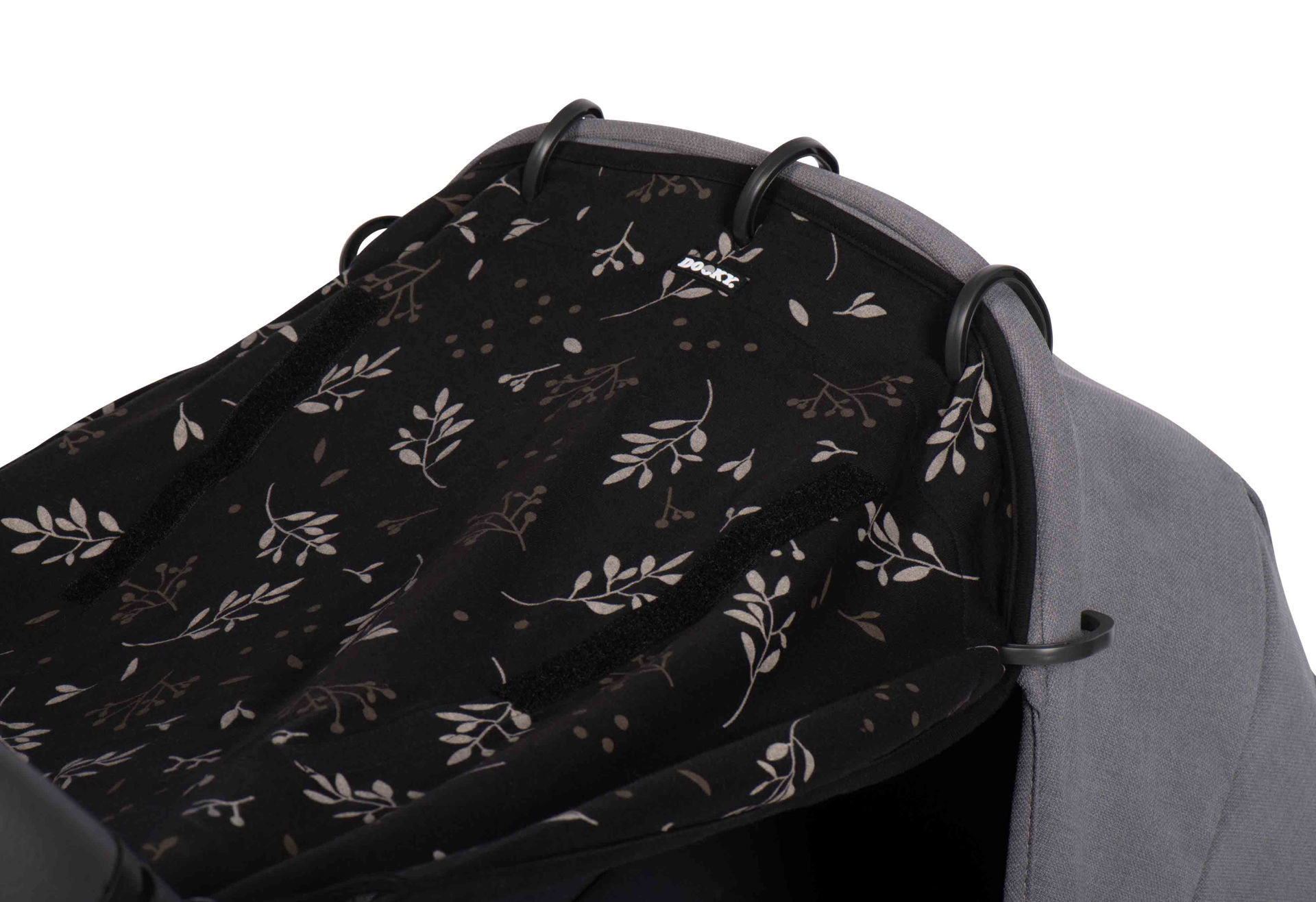 Благодарение на уникалния си дизайн, Dooky Original е лесно регулируем по височина. Просто го завийте и го залепете с велкро или го оставете надолу. С връзките в долната част можете да завържете сенника, за да сте сигурни, че той не е засегнат от вятъра.