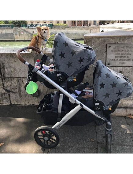 Точно за това UV сенникът на Dooky Original e отговорът. Изработен е от 100% памучна дишаща материя (която създава подходяща вентилация) със защита срещу слънцето UPF50 +, която блокира повече от 95% от вредните UVA и UVB лъчи и се смята за отличнa UV защита. Тяхната основна особеност са пръстените, с които много лесно се връзват на количката или на столчето за кола.