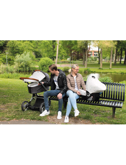 Сенника Dooky Original се поставя за секунди върху всички колички и столчета за кола с наличните пръстени.