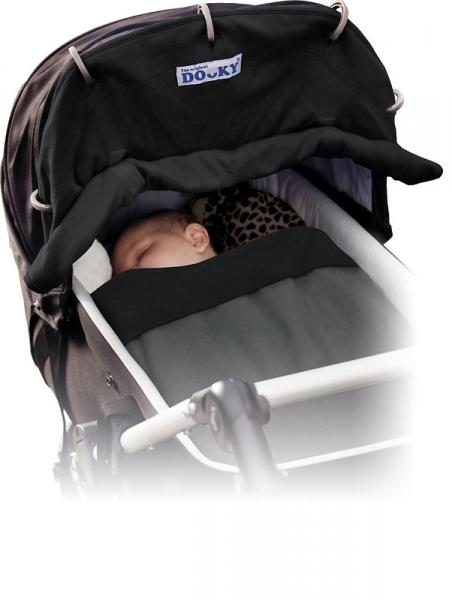Сенника Dooky Original се поставя за секунди върху всички колички и столчета за кола с наличните пръстени.