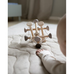 Супер магическата дървена топка, която ще стимулира всички сетива на вашето бебе! Интерактивна играчка за малки деца, която стимулира различни сетива и развива фината моторика. Позволете на вашето мъниче да развие двигателните си умения като дърпа въжетата между топките и пръчките. В...