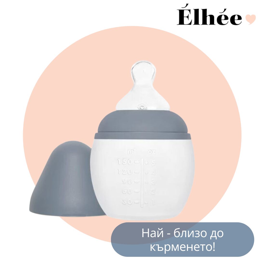 Élhée - Антиколик шише от медицински силикон с биберон 150 мл - Blue grey