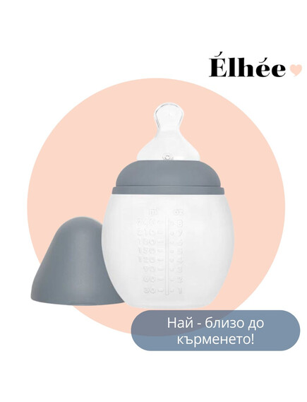 Élhée - Антиколик шише от медицински силикон с биберон 240 мл - Blue grey