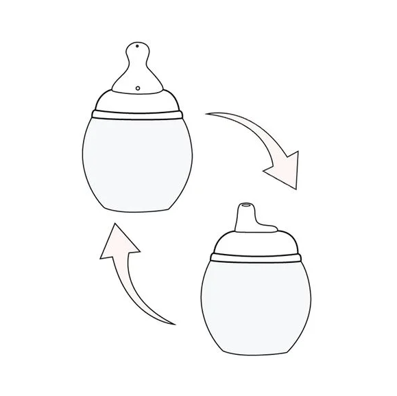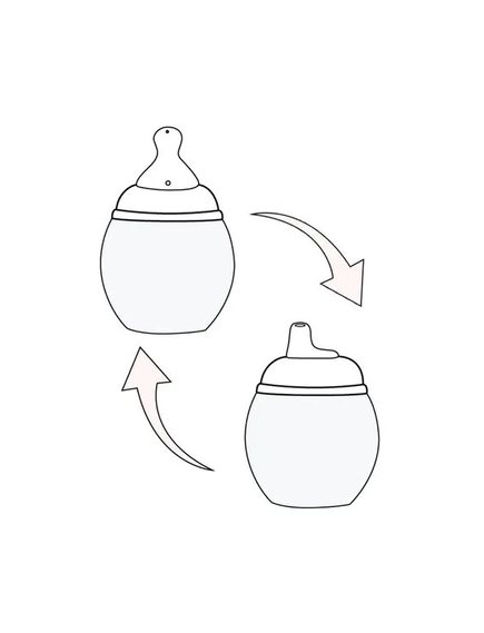 Комплект от плоски биберони, съвместими с цялата гама шишета на Elhée, които превръщат бебешките бутилки в преходна чаша за деца от 4-месечна възраст, които започват да се учат да пият течности, различни от млякото в шише.