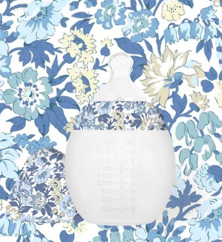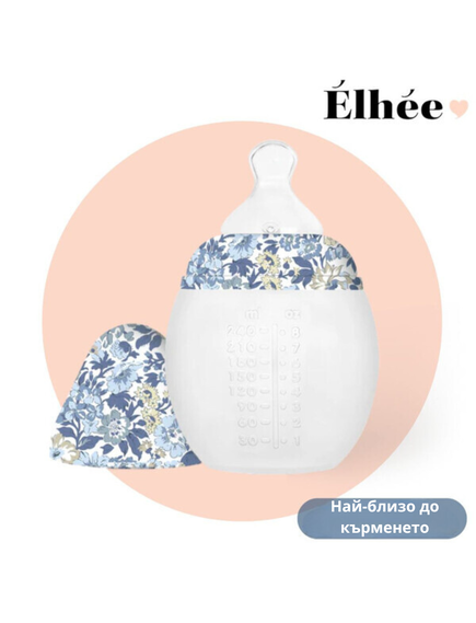 Élhée x Liberty Collection - Антиколик шише от медицински силикон с биберон 240 мл - Honey Dew Blue
