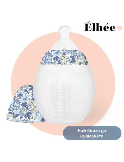 Élhée x Liberty Collection - Антиколик шише от медицински силикон с биберон 330 мл - Honey Dew Blue