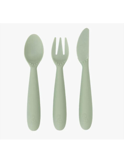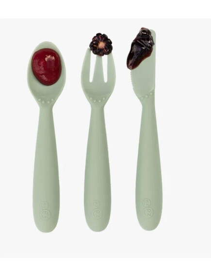 Ezpz Обучителен комплект за хранене - лъжица, вилица и нож създадени от педиатър специалист по храненето и подходящи за ЗВБ - Happy 24+ месеца - Sage