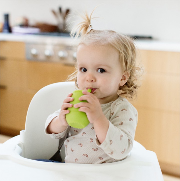 Мини чашката със сламка развива закръгляването на устните и насърчава развитието на речта! Тя учи малките деца да пият от чаша с отворена уста и безопасно да се научат да използват сламката.