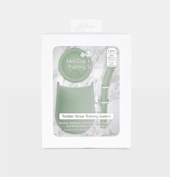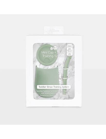 Ezpz Обучителна чаша със сламка, създадена от педиатър специалист по храненето и подходяща за ЗВБ - 12+ месеца Mini Cup Sage