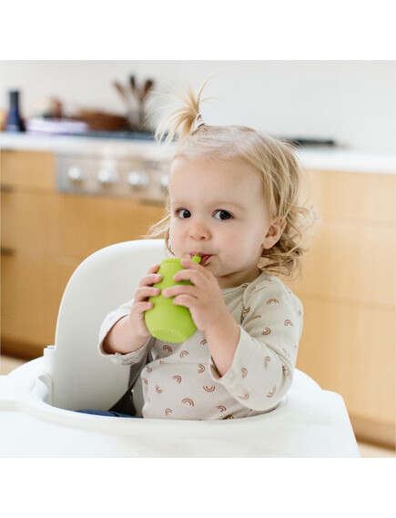 Проектирана от Педиатър Специалист Диетолог! Тя е и е първата чаша, която учи и насърчава храненето с отворена уста. Създадена е така, че да пасва на малката уста и малките ръчички на детето. Неплъзгащото се покритие помага на децата да развият техните двигателни умения и да кординират рефлекса ръка-към-око.