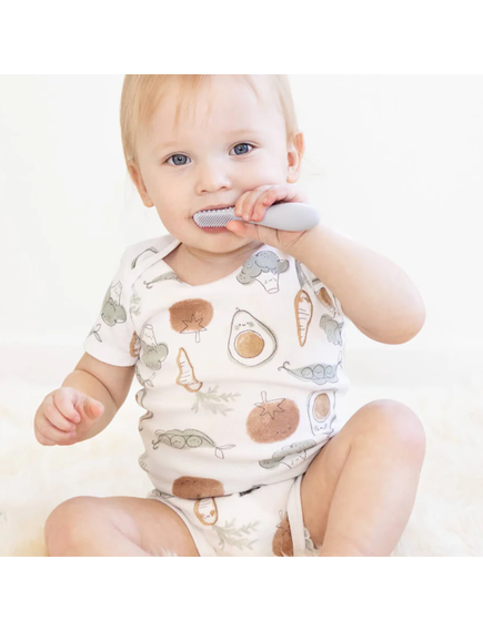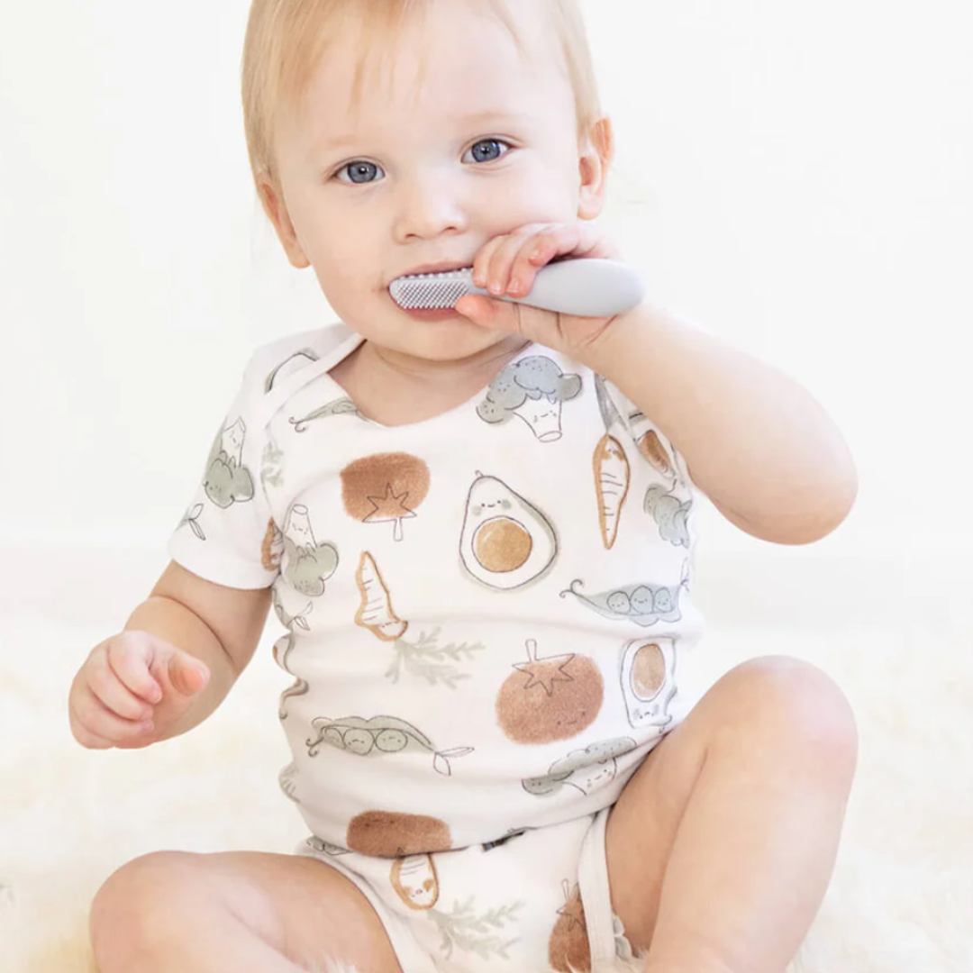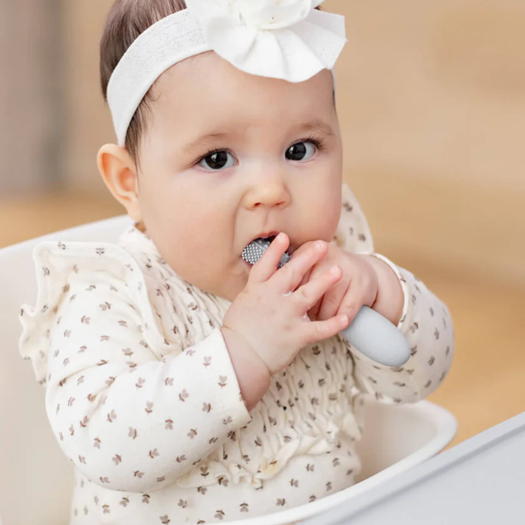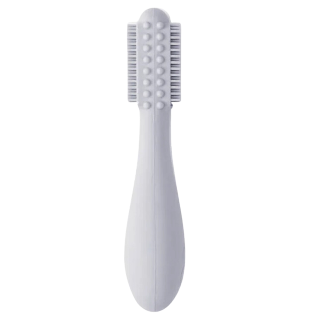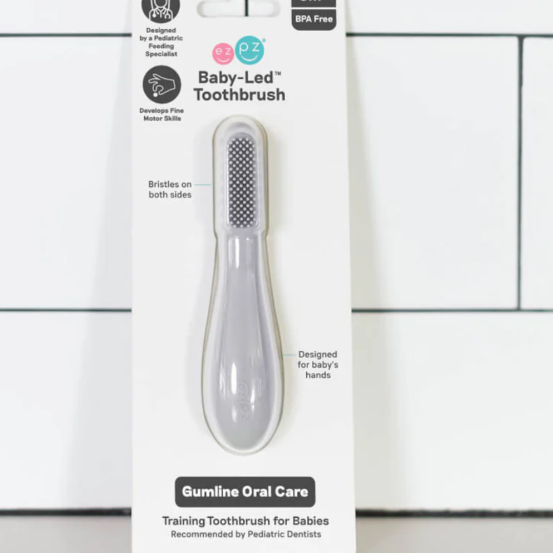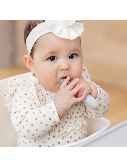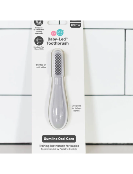 Бебешката четка за зъби е предназначена да се грижи за устната хигиена на бебето, насърчавайки здравословните орални навици и подготвяйки бебето за консумация на твърди храни.